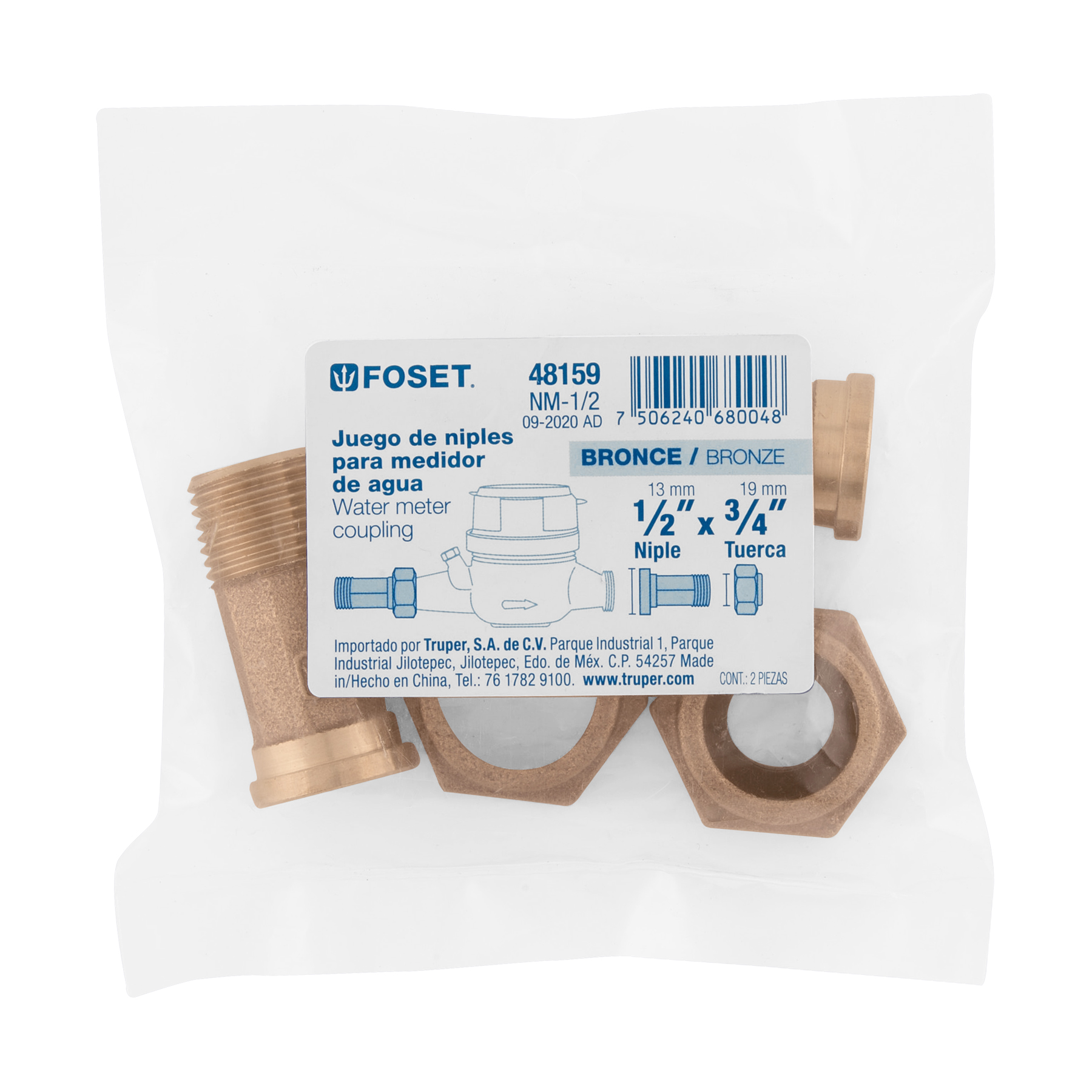 Juego de 2 Niples con tuercas para medidor de agua de 1/2″ x 3/4″