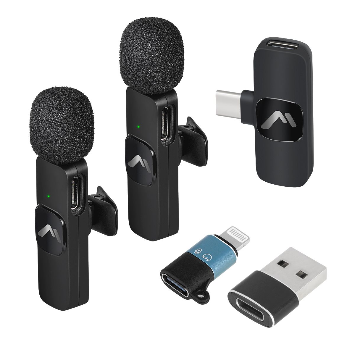 Kit de 2 de micrófonos de solapa negros Recargables